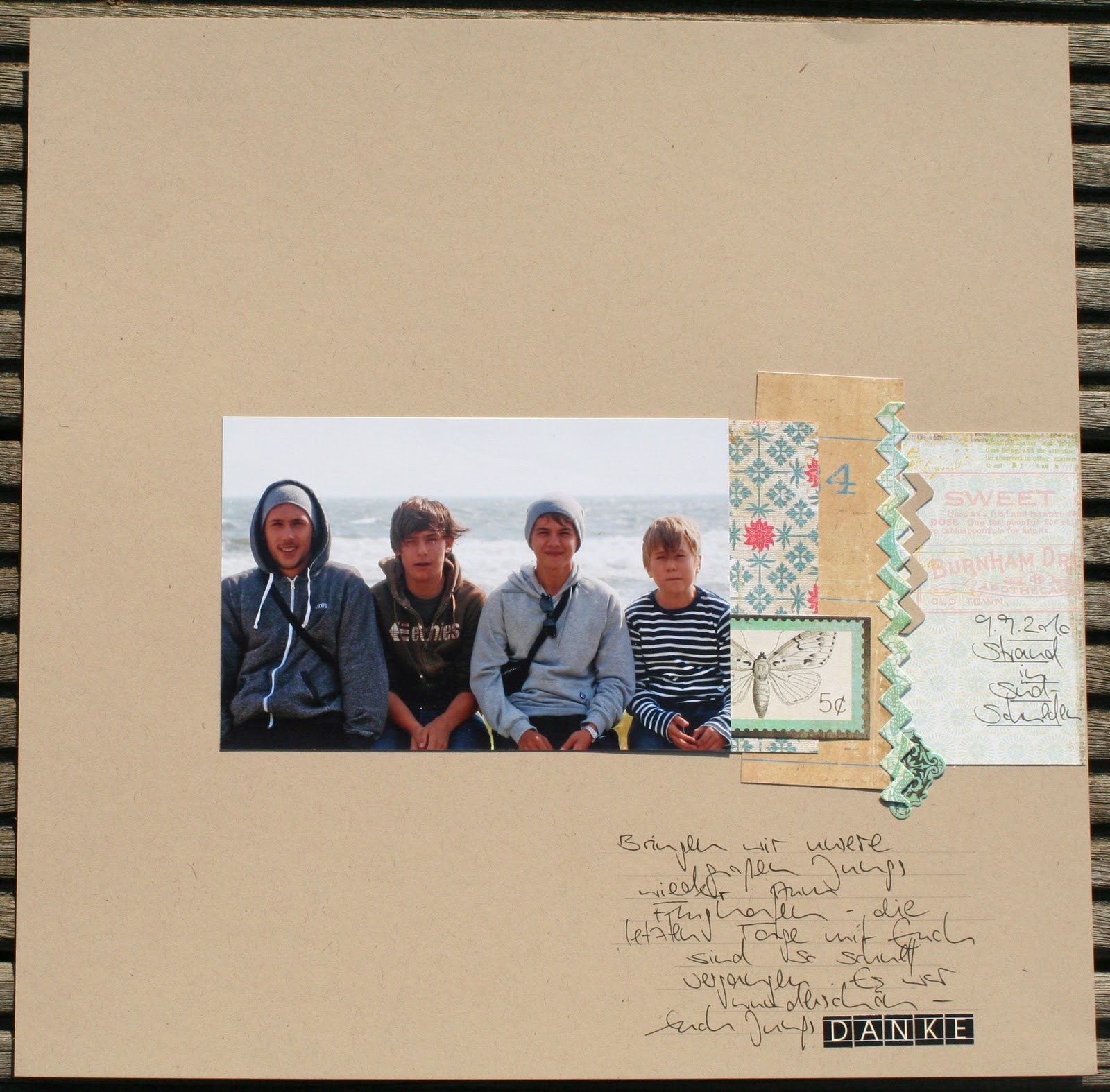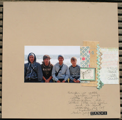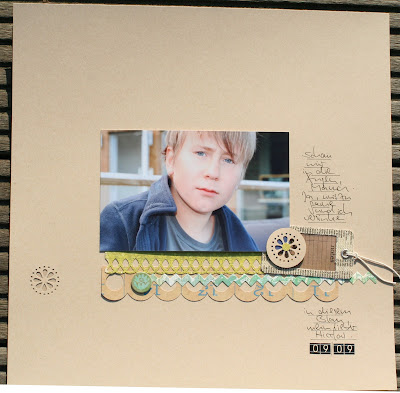 to scrap I've come across the map making. Once infected in 2003 with the virus die, the material quickly expanded search of colorful papers, from Eyelets & Co. The first mini-albums and stretcher experiments in the autumn of 2006 they had done for me and I tried too quickly the classical Scrapbookformat 12x12 ", which I have only too happy to continue to make today. Now and then I take trips to other formats and create still like cards. I love straightforward design, low, but selected on top knick-knacks and subdued colors. I find that my interests very well coincide with the Monatskits and workshops at the paper shop and am looking so crazy to be part of the design team be